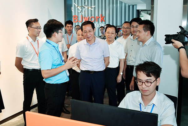 猪八戒网是中国最大的文化创意服务第三方交易平台,是中国领先的服务众创平台。今年3月份,浔阳区积极引进猪八戒网落户九江,分三期规划,总投资2亿元在浔阳区范围内打造面积约3万平方米的“互联网十双创”产业园。林彬杨与企业负责人亲切交谈,询问园区运作模式、创客入驻及项目创意等情况。